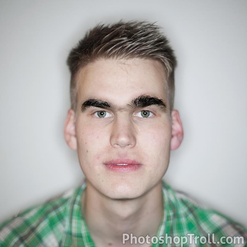 Okay, i don't know what to say to this. April fools? I'm not sure if we are slowly going in the right direction with the eyes or not, but I don't think I can explain it better anyway. Just give me the picture with ne normal eyes and no mustache and it's fine.