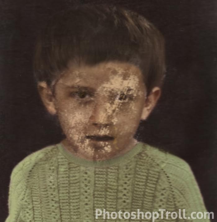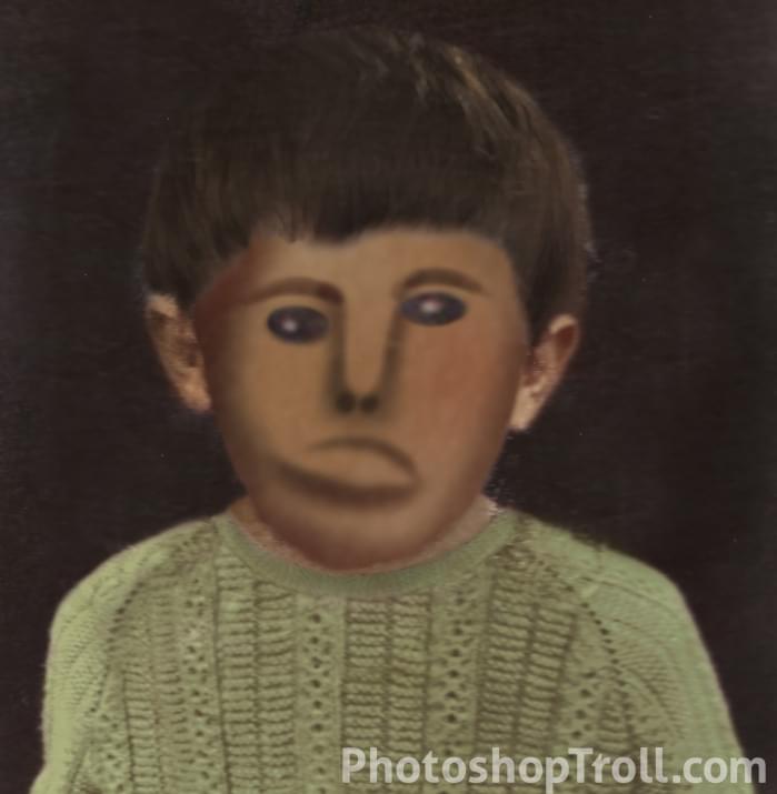 I spent a few hours repainting his facial features but I think this is as close as I can get. It hasn't come out as well as I had hoped. but it's more clear than the original and it has artistic feel to it now.